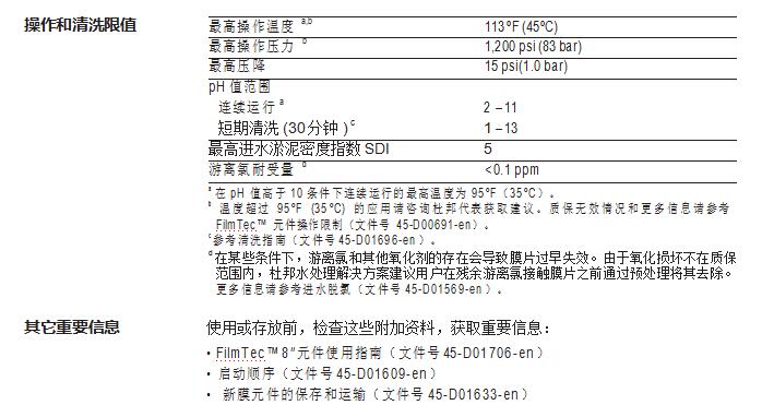 • 無需進行氧化后處理保證了在整個運行周期內(nèi)都能保持高性能。FilmTec™ 元 件更耐用,且能在更寬泛的 pH 值范圍(1-13)內(nèi)進行化學清洗。
