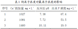 2.1 鈣離子濃度對(duì)氟離子去除的影響