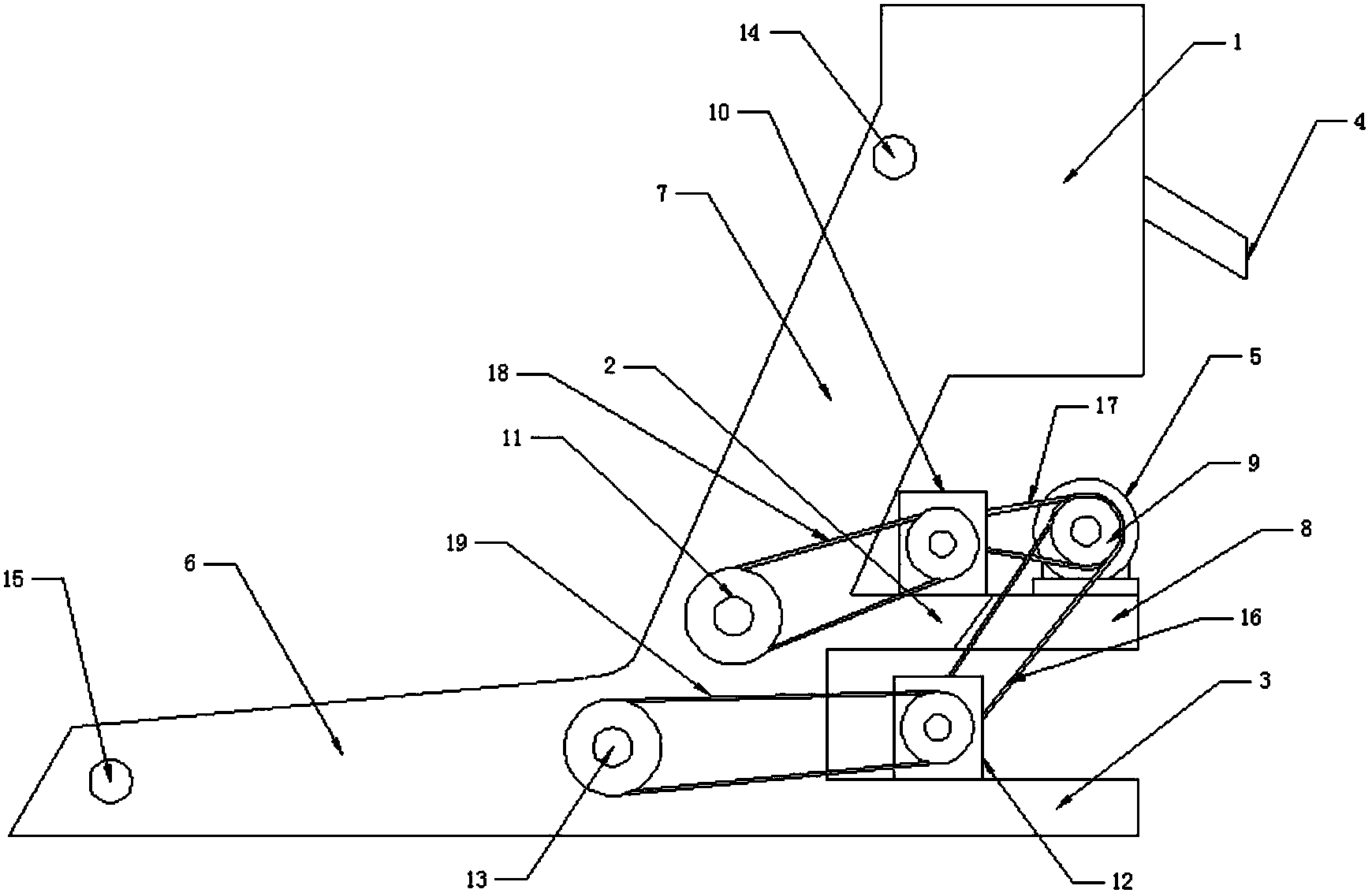 2.根據(jù)權(quán)利要求1所述的新型污水處理用格柵機(jī),其特征在于:所述格柵機(jī)本體(1)上固定安裝有一排污滑板(4),所述連接帶(20)的頂部輸出端與所述排污滑板(4)相連。