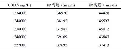 廢水來源于浙江嘉民塑膠有限公司酚醛樹脂生產(chǎn)廢水,原水CODcr 為200000 ~250000mg /L,苯酚含量為30000 ~55000mg /L,甲醛含量為40000~60000m g /L,pH 為1. 5~1. 7。