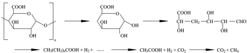 推測果膠的厭氧降解途徑[19]如圖 6.