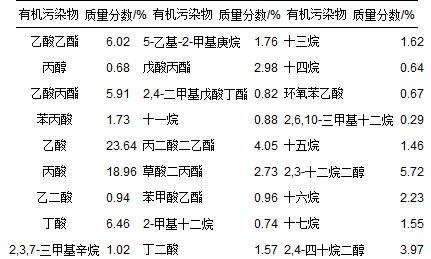 采用氣相色譜-質譜聯用儀(GC-MS)對果膠厭氧降解的中間產物進行了分析,結果如表1所示,檢出中間產物中的主要有機物是乙酸、 丙酸、 低級酯、 烷基醇(C12~C40).