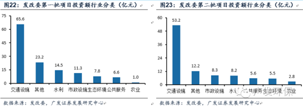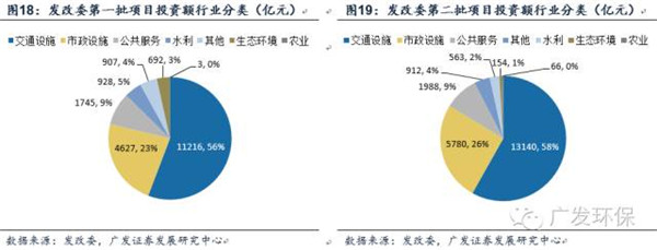 從推介項(xiàng)目金額的行業(yè)分布來看,交通設(shè)施與市政工程占比較大。按投資金額排序,發(fā)改委、二批推介項(xiàng)目中交通設(shè)施、市政設(shè)施、公共服務(wù)均居前三位,合計(jì)分別占入庫項(xiàng)目投資總額的87.42%、92.5%。