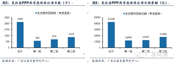 發(fā)改委前兩批推介項(xiàng)目中,批推介1043個(gè),因多種因素變化而不再采用PPP模式的項(xiàng)目254個(gè);第二批退庫項(xiàng)目518個(gè);考慮一二批的退庫,PPP項(xiàng)目庫比較新項(xiàng)目共2992個(gè),投資額5.1萬億元。