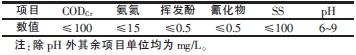 根據現場的實際排放量設計廢水處理站規模為60 m3/d(即2.5 m3/h)。處理后的廢水要求達到《污水綜合排放標準》(GB 8978—1996)一級排放標準要求(見表2)。