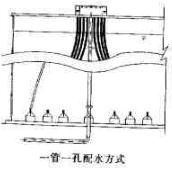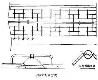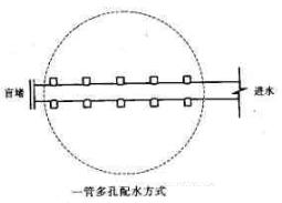 在一根管上均勻布水雖然在理論上是可行的,但在實際中往往是不可實現的,因為這種系統隨著時間有些孔口將不可避免發生堵塞。而進水將從沒有堵塞的其他孔口重新分配,從而導致在反應器池底的進水分布不均勻,因此應該盡可能避免在一個管上有過多的孔口。目前這種布水方式已較少采用。