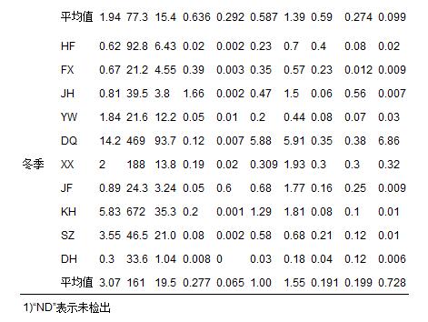 表 1 不同季節采樣組10家豬場沼液重金屬濃度的變化情況1)