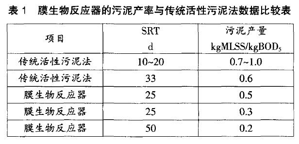 d)膜生物反應(yīng)器的污泥產(chǎn)率低可以通過表1進(jìn)行比較: