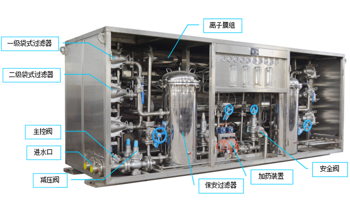 乳化液配比給水反滲透裝置用于向綜采工作面乳化液泵站提供合格的除鹽水。