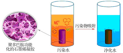 圖 5 聚多巴胺功能化的石墨烯凝膠用于污水凈化的簡易圖示