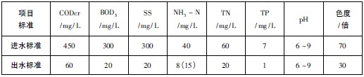 表1 設(shè)計(jì)水質(zhì)以及排放標(biāo)準(zhǔn)