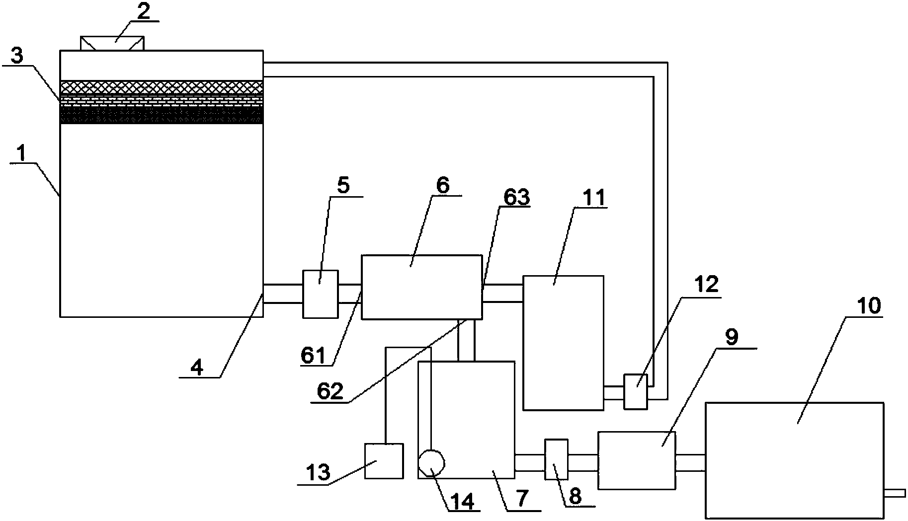 進一步地,所述第三抽水泵的出口與所述廢水收集箱連通處位于所述過濾層的上方。