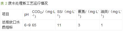自新工藝正常運(yùn)行1a多以來(lái),廢水處理效果良好,水質(zhì)監(jiān)測(cè)情況如表2所示。