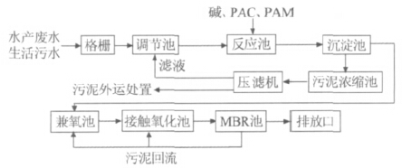 該企業(yè)廢水首先經(jīng)過(guò)格柵處理,除掉魚(yú)渣、包裝帶等較大的懸浮物,以保證后續(xù)處理的穩(wěn)定運(yùn)行及提升泵的運(yùn)轉(zhuǎn);出水進(jìn)入調(diào)節(jié)池進(jìn)行均質(zhì)均量,調(diào)節(jié)廢水的水質(zhì)水量,避免對(duì)后續(xù)生化處理造成較大的負(fù)荷變化,保證生化處理正常運(yùn)行;均質(zhì)均量后,泵入絮凝反應(yīng)池,充分反應(yīng)后的廢水流入沉淀池進(jìn)行泥水分離,去除大部分SS和部分COD、氨氮,污泥接至污泥池,上清液順序流入兼氧池和接觸氧化池,在兼氧池中大分子有機(jī)物被兼氧菌水解為易降解的小分子有機(jī)物,降低了廢水中的有機(jī)物濃度,并提高可生化性;接觸氧化池內(nèi)的好氧菌不斷攝取廢水中的有機(jī)物作為營(yíng)養(yǎng)加以吸收,通過(guò)代謝反應(yīng),小分子和溶解性有機(jī)物被降解,一部分被氧化為比較終產(chǎn)物CO2和H2O,另一部分轉(zhuǎn)化為新的有機(jī)體使細(xì)胞增殖。廢水隨后進(jìn)入MBR系統(tǒng),由于膜的高效分離作用,分離效果遠(yuǎn)好于傳統(tǒng)沉淀池,能夠穩(wěn)定獲得優(yōu)質(zhì)的出水水質(zhì)。