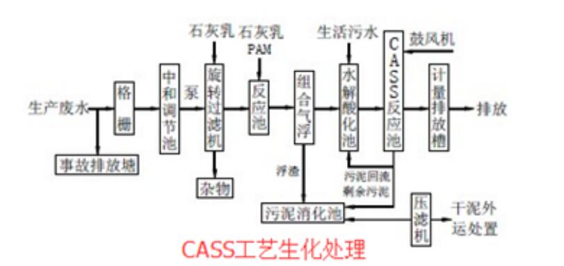 CASS工藝的生物降解、污泥沉淀和廢水排放均在同一池中進行,不需調節池、二沉池及污泥回流設備,可大大節省投資,降低運行費用和減少用地。CASS工藝采用延時曝氣,使污泥的產率低、脫水性好;新型水下曝氣設備和浮動式可自動升降專用撇水裝置的應用使系統簡便、靈活,出水穩定。
