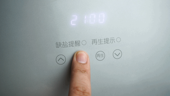 軟水機的指示器用于提醒我們是否需要加鹽(軟化水的材質),設置,以及加鹽后的重置功能,可調選項并不多。
