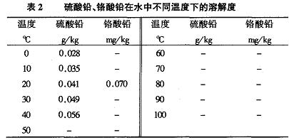 由于該污水處理裝置采用無機反應去除金屬離子,因此,出水中金屬離子的濃度只受到生成物溶解度的影響,與進水水質無關。硫酸鉛、鉻酸鉛在水中不同溫度下的溶解度見表2。