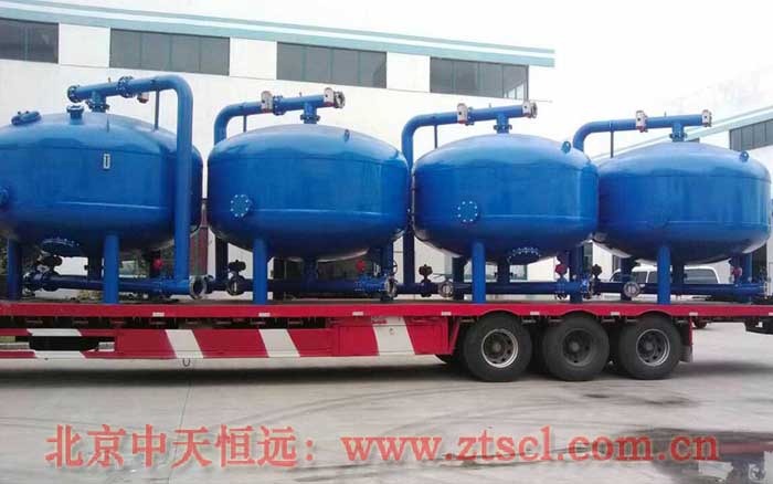 3.過濾水量大,過濾效果好,過濾流速快,正常濾速可在40m/h左右,根據水質可達60m/h;過濾器反洗采用產品水,且不必設增壓泵和反洗泵;反洗歷時2-3min,反洗水量<3立方米。過濾精度高,雜質過濾精度可在0.10mm以下,出水濁度可小于0.5NTU。過濾系統(tǒng)由標準單元砂缸組成,過濾流量可從30.6立方米/小時增至2500立方米/小時。